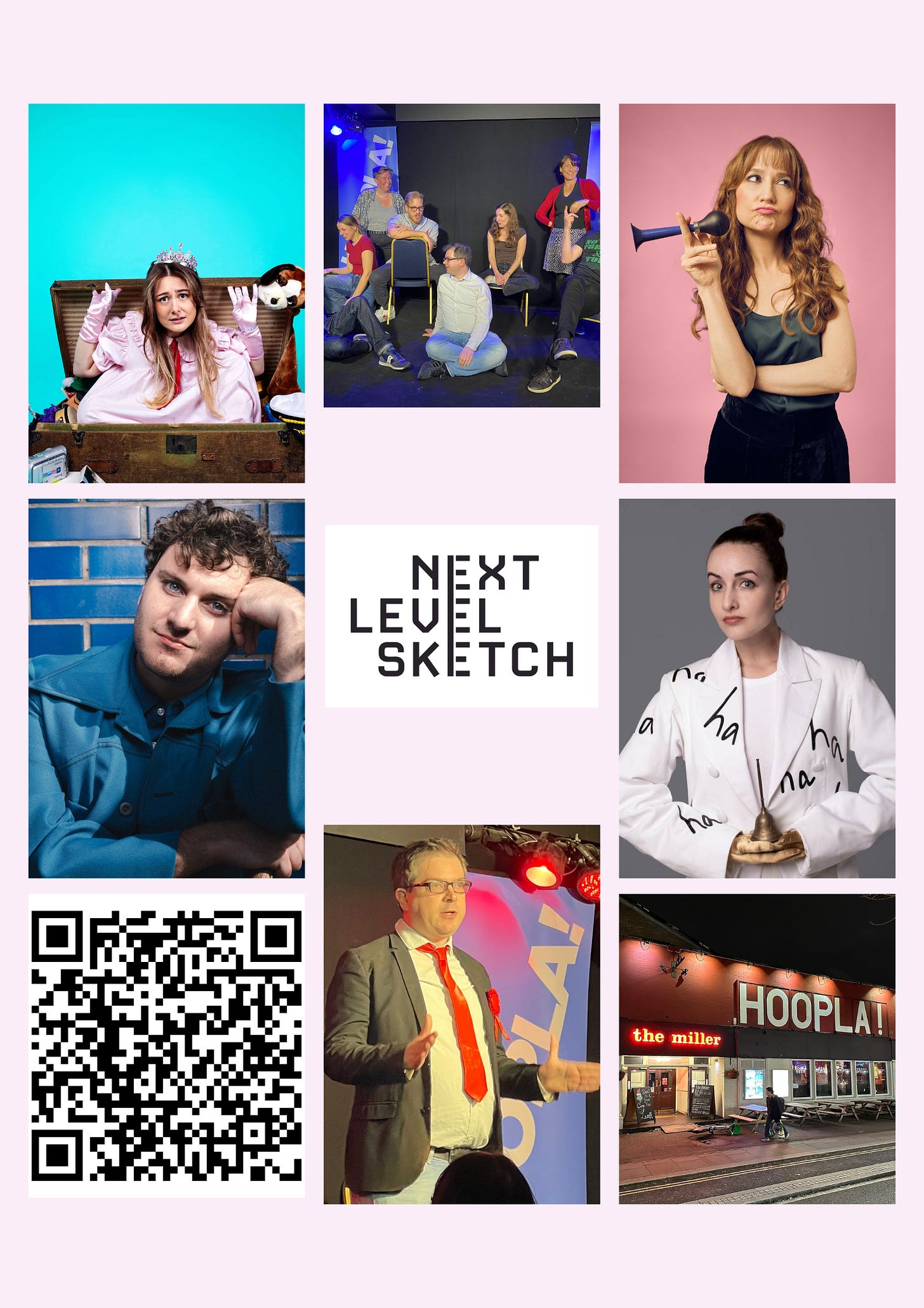This is going to be an extra-special show. We’re super excited to be putting on Jess Carrivick, who is a former Next Level Sketch cast member who you might have seen ON THE TELLY of late. She’s a wonderful character comedian and it feels a beautiful full circle moment to have her back with us on the Hoopla stage.
