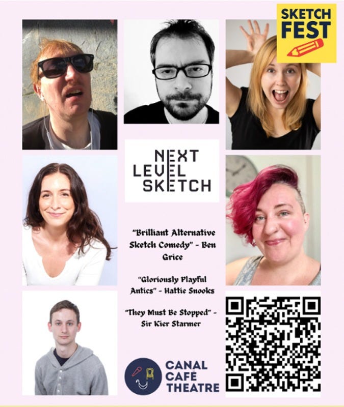 We have had to go without a Hoopla show this month, so we’ve taken advantage of this unexpected freedom to sign up for a couple of Greatest Hits shows at SketchFest 2026, a festival being run by Canal Cafe Theatre, aka the home of the world’s longest running live comedy show2.
